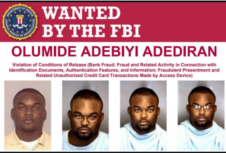 The FBI has announced a reward of up to $10,000 for information leading to the arrest and conviction of Nigerian national, Olumide Adebiyi Adediran, wanted for violating conditions of release.