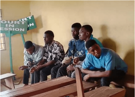 The defendants — Chima Emmanuel (34), Akintunde Henry (18), Chidi Iloabachia (18), Oyeniyi Adewale (31), and Chuks Obi (27) — were charged with a two-count offence bordering on conspiracy and stealing.