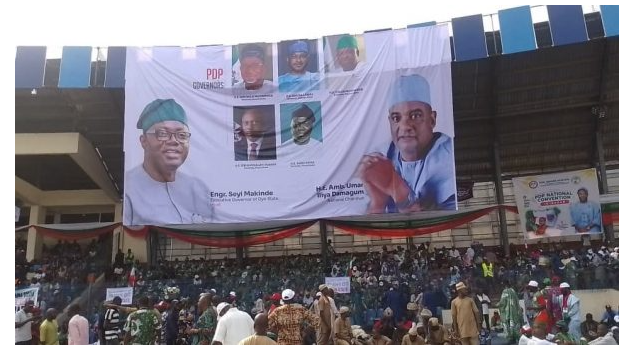Governors Ademola Adeleke of Osun, Agbu Kefas of Taraba, and Siminalayi Fubara of Rivers were noticeably absent from the Peoples Democratic Party (PDP) National Convention holding at the Lekan Salami Stadium in Adamasingba, Ibadan.