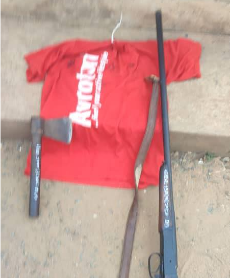 “The following exhibits were also recovered from him; one locally made single-barrel gun, one small axe and one red polo shirt used as a face mask.