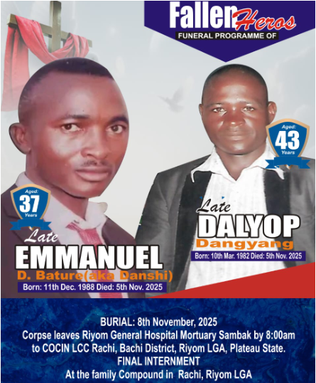 The Executive Chairman of Riyom Local Government Council, Hon. Sati Bature Shuwa, in a statement signed by his Chief Press Secretary, Damba Dang, “expressed deep pain and distress over yet another heart-wrenching attack, leading to the brutal k!lling of the two able-bodied and promising youths by suspected Fulani militia.”